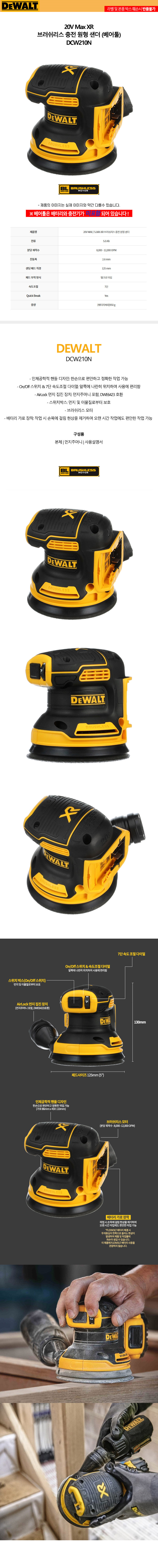 [디월트] 브러쉬리스 충전원형샌더-베어툴DCW210N