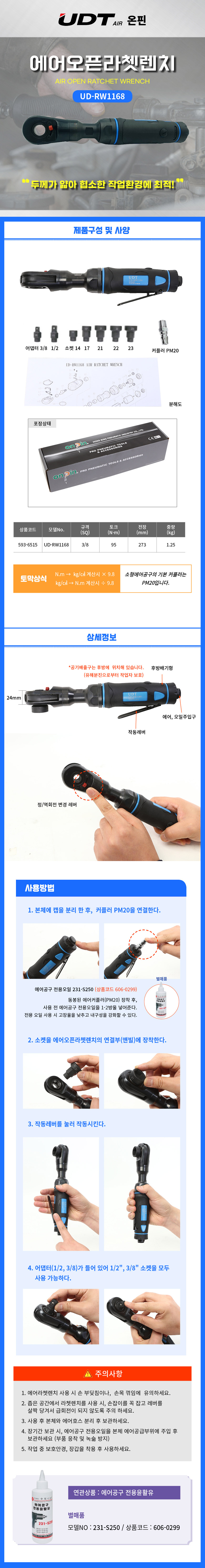 [UDT] 3/8SQ 에어오픈라쳇렌치UD-RW1168