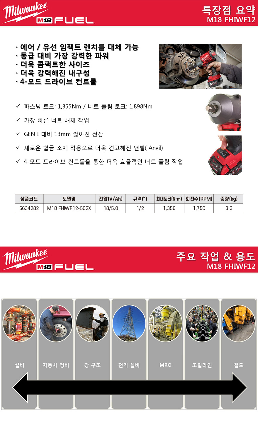 모델명 : M18 FHIWF12-502X/ 18V/5.0Ah