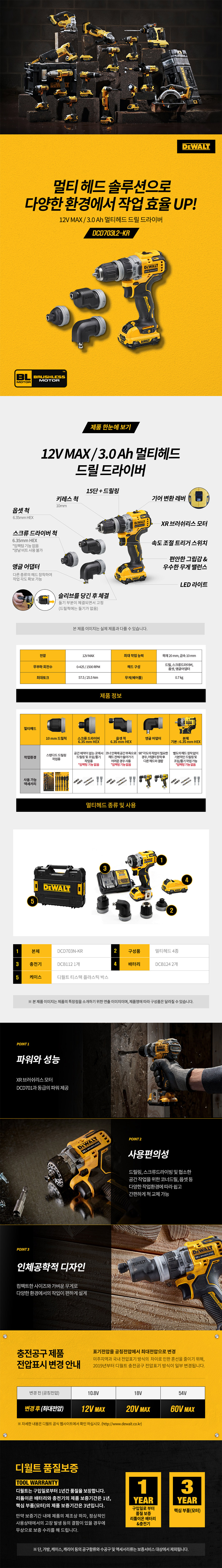 [디월트] 멀티헤드 충전드릴드라이버DCD703L2-KR