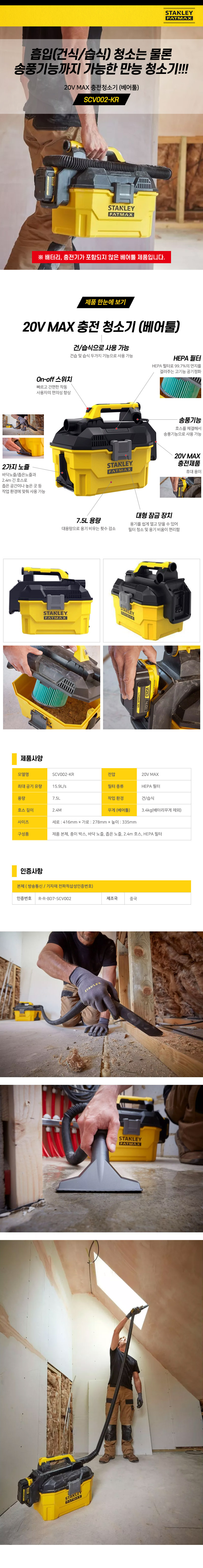 [스탠리] 건습식 충전청소기-베어툴SCV002-KR
