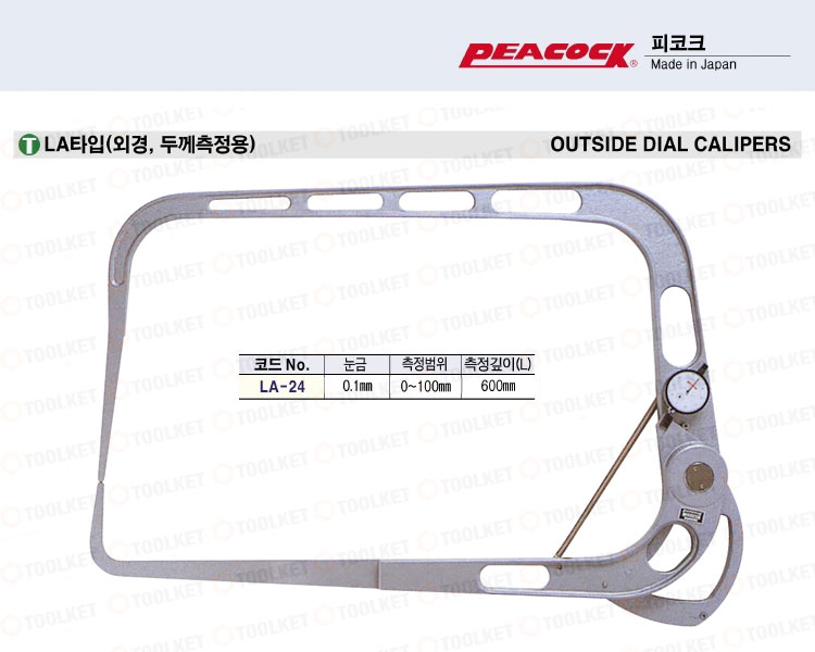 [피코크] LA타입 외경 다이얼캘리퍼 (외경, 두께측정용)LA-24-PE
